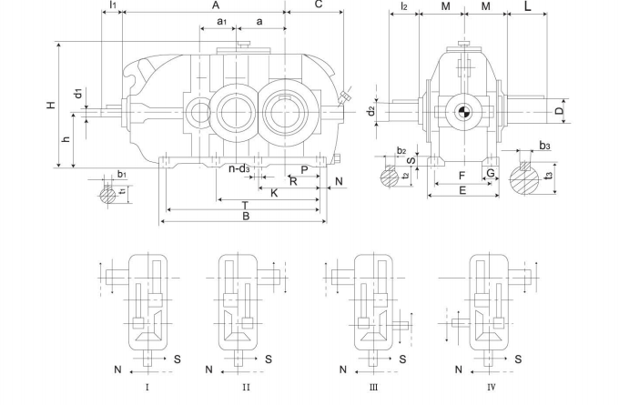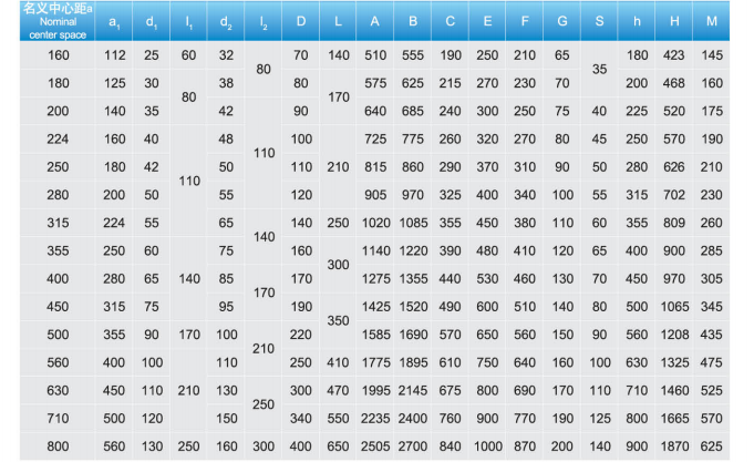 產品型號:DCY160、DCY180、DCY200、DCY224、DCY250、DCY280、DCY315、DCY355、DCY400、DCY450、DCY500、DCY56、DCY630、DCY710、DCY800。公稱傳動比:16、18、20、22.4、25、28、31.5、35.5、40、45、50。DCY減速機的裝配形式及外形尺寸圖: